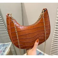 Τσάντα Ώμου Καφέ Κροκό με Αλυσίδα