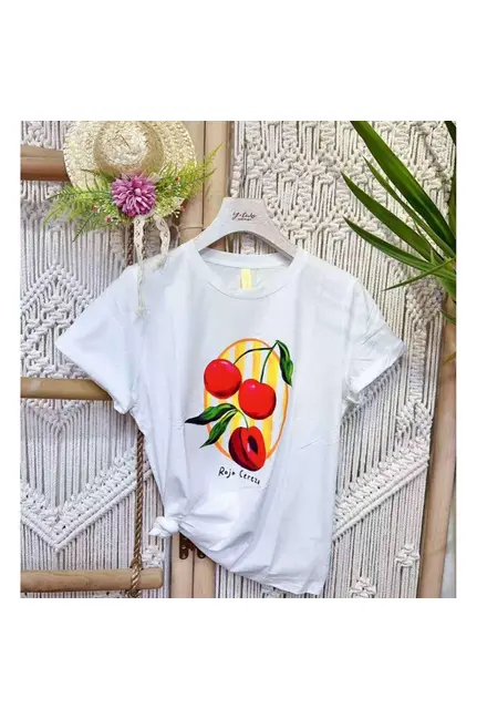 Φρέσκο print με κόκκινα κερασάκιαΕλαστικό ύφασμα: 95% βαμβάκι, 5% ελαστάνη