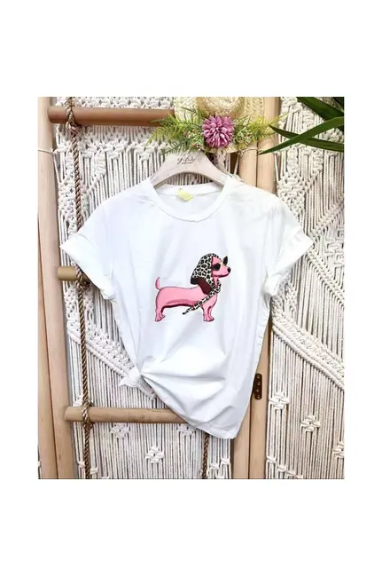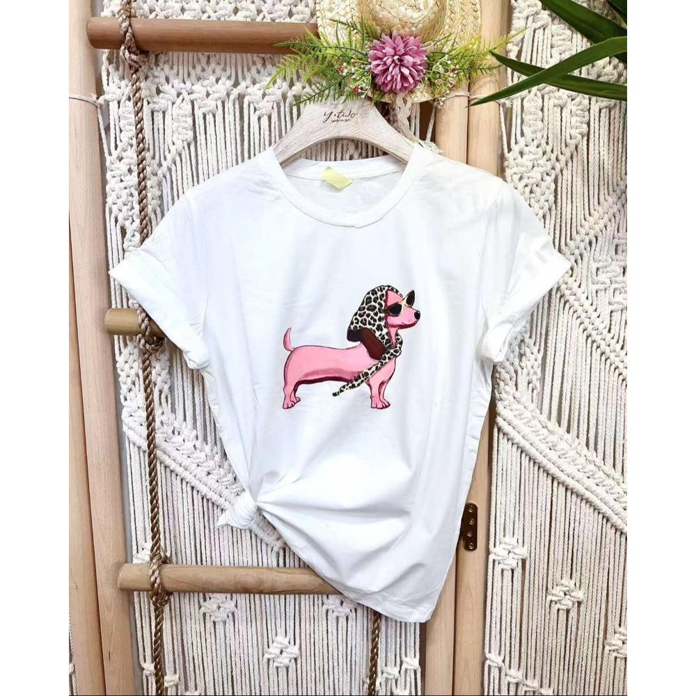 Χαριτωμένο τύπωμα: Ροζ σκυλάκι με φουλάρι λεοπάρΕλαστικό ύφασμα: 95% βαμβάκι, 5% ελαστάνη
