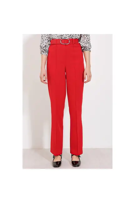Ανανεώστε την γκαρνταρόμπα σας με αυτό το εντυπωσιακό κόκκινο παντελόνι, κατασκευασμένο από κρεπ ύφασμα με ψηλόμεσο σχεδιασμό και ίσια γραμμή. Φτιαγμένο από 97% πολυεστέρα και 3% ελαστάνη, προσφέρει ελαφριά ελαστικότητα για άνετη εφαρμογή και ευκολία στην κίνηση. Ιδανικό για office looks, αλλά και για πρωινές βόλτες στην πόλη, αυτό το παντελόνι θα σας συνοδεύσει με στυλ κάθε στιγμή της ημέρας. Δημιουργήστε ένα εκλεπτυσμένο look συνδυάζοντάς το με ασπρόμαυρες αποχρώσεις στο πάνω μέρος, όπως λευκά πουκάμισα ή μαύρα τοπ, για μια κομψή και μοντέρνα εμφάνιση.
