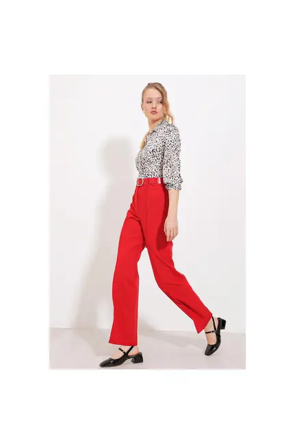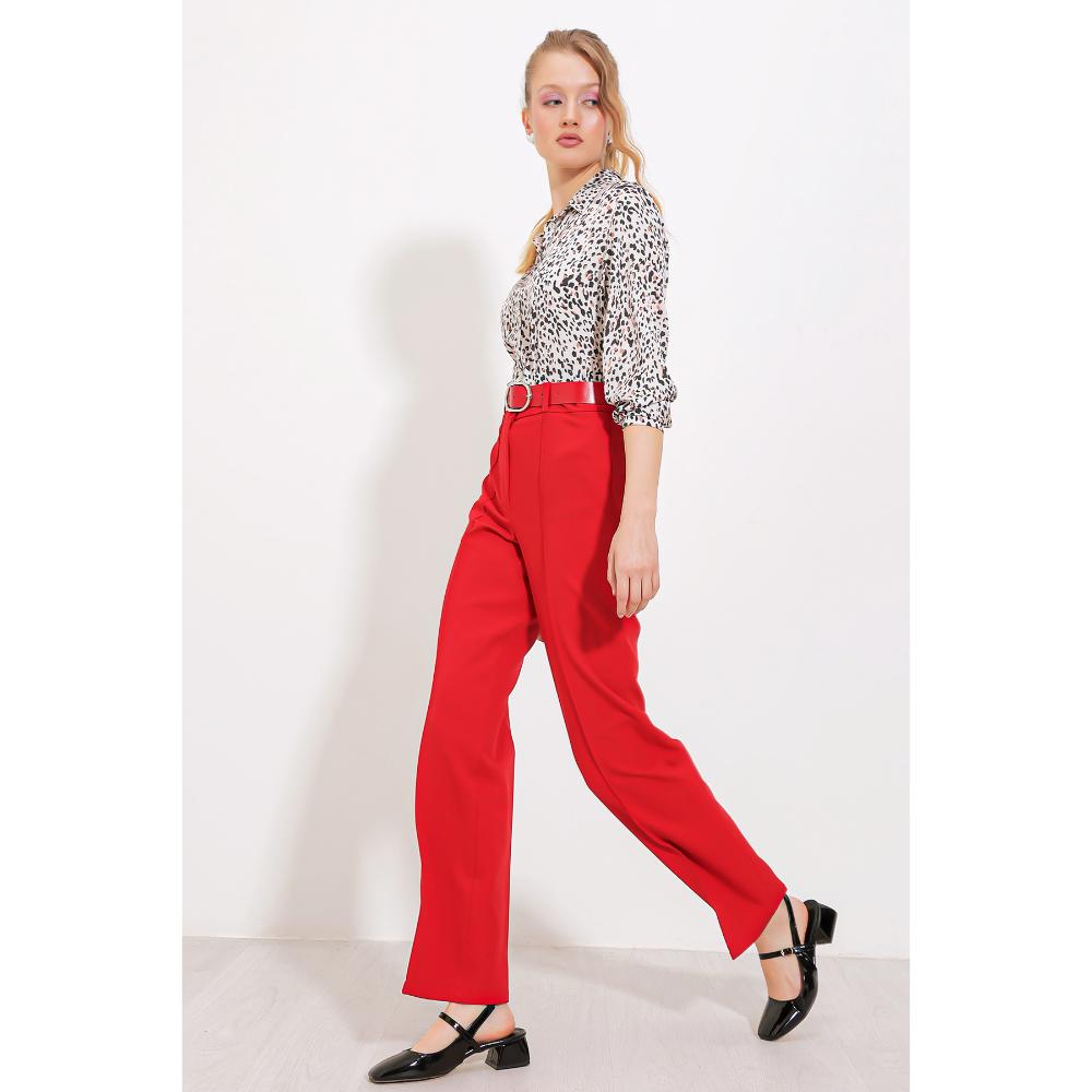 Ανανεώστε την γκαρνταρόμπα σας με αυτό το εντυπωσιακό κόκκινο παντελόνι, κατασκευασμένο από κρεπ ύφασμα με ψηλόμεσο σχεδιασμό και ίσια γραμμή. Φτιαγμένο από 97% πολυεστέρα και 3% ελαστάνη, προσφέρει ελαφριά ελαστικότητα για άνετη εφαρμογή και ευκολία στην κίνηση. Ιδανικό για office looks, αλλά και για πρωινές βόλτες στην πόλη, αυτό το παντελόνι θα σας συνοδεύσει με στυλ κάθε στιγμή της ημέρας. Δημιουργήστε ένα εκλεπτυσμένο look συνδυάζοντάς το με ασπρόμαυρες αποχρώσεις στο πάνω μέρος, όπως λευκά πουκάμισα ή μαύρα τοπ, για μια κομψή και μοντέρνα εμφάνιση.