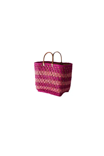Αυτή η έντονη φούξια τσάντα από τη Μαδαγασκάρη συνδυάζει διαφάνειες και γεωμετρική πλέξη σε ένα μοντέρνο, κομψό αποτέλεσμα. Κατασκευασμένη υπό δίκαιες συνθήκες μέσω fair trade, στηρίζει τους δημιουργούς της.