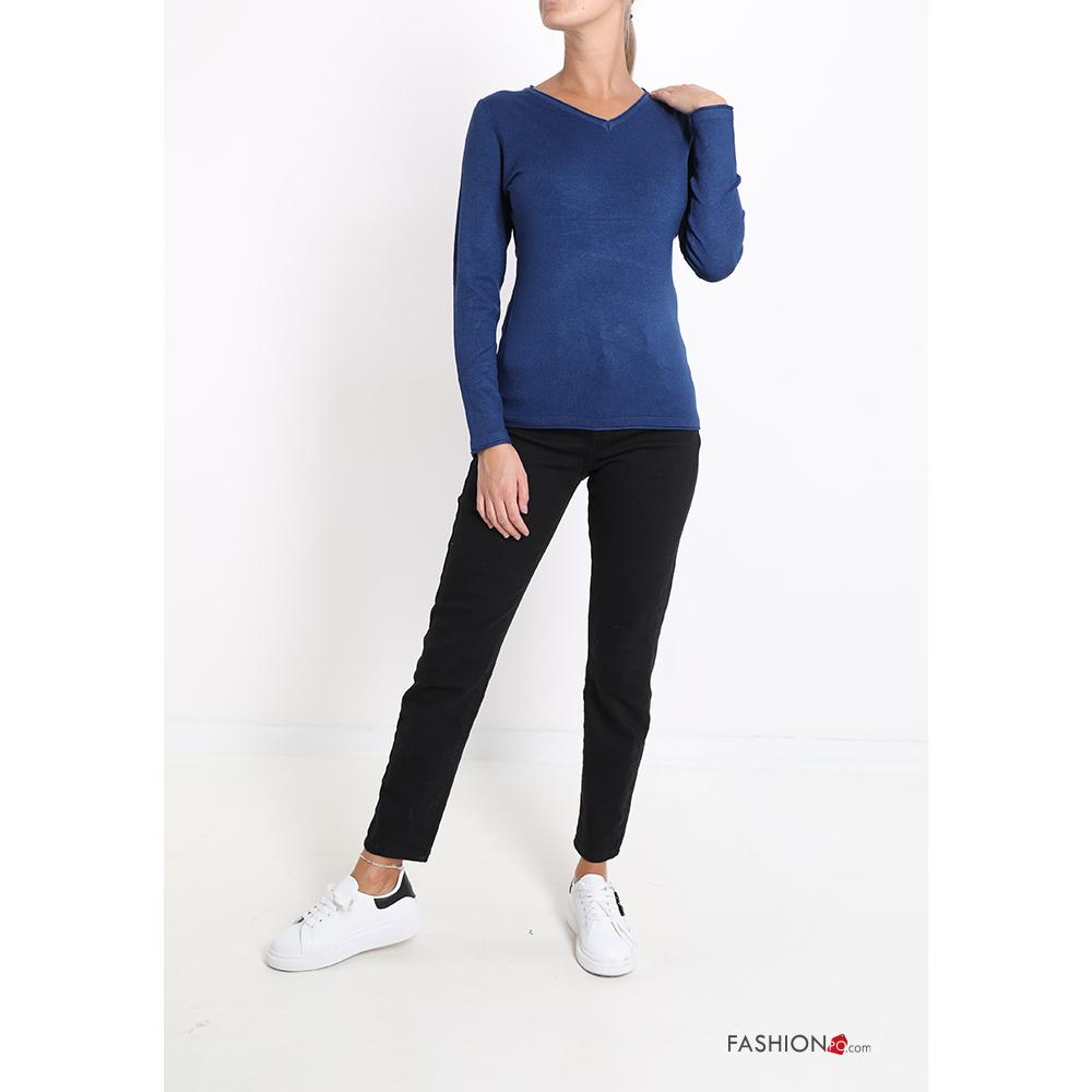 Αναδείξτε τη διαχρονική κομψότητα με αυτή τη γυναικεία μπλούζα με μακρύ μανίκι και V λαιμόκοψη. Το κλασικό μπλε χρώμα της προσφέρει μια διαχρονική επιλογή για casual και formal εμφανίσεις, ενώ η slim fit γραμμή αγκαλιάζει το σώμα προσφέροντας άνεση και κομψότητα.Χαρακτηριστικά: