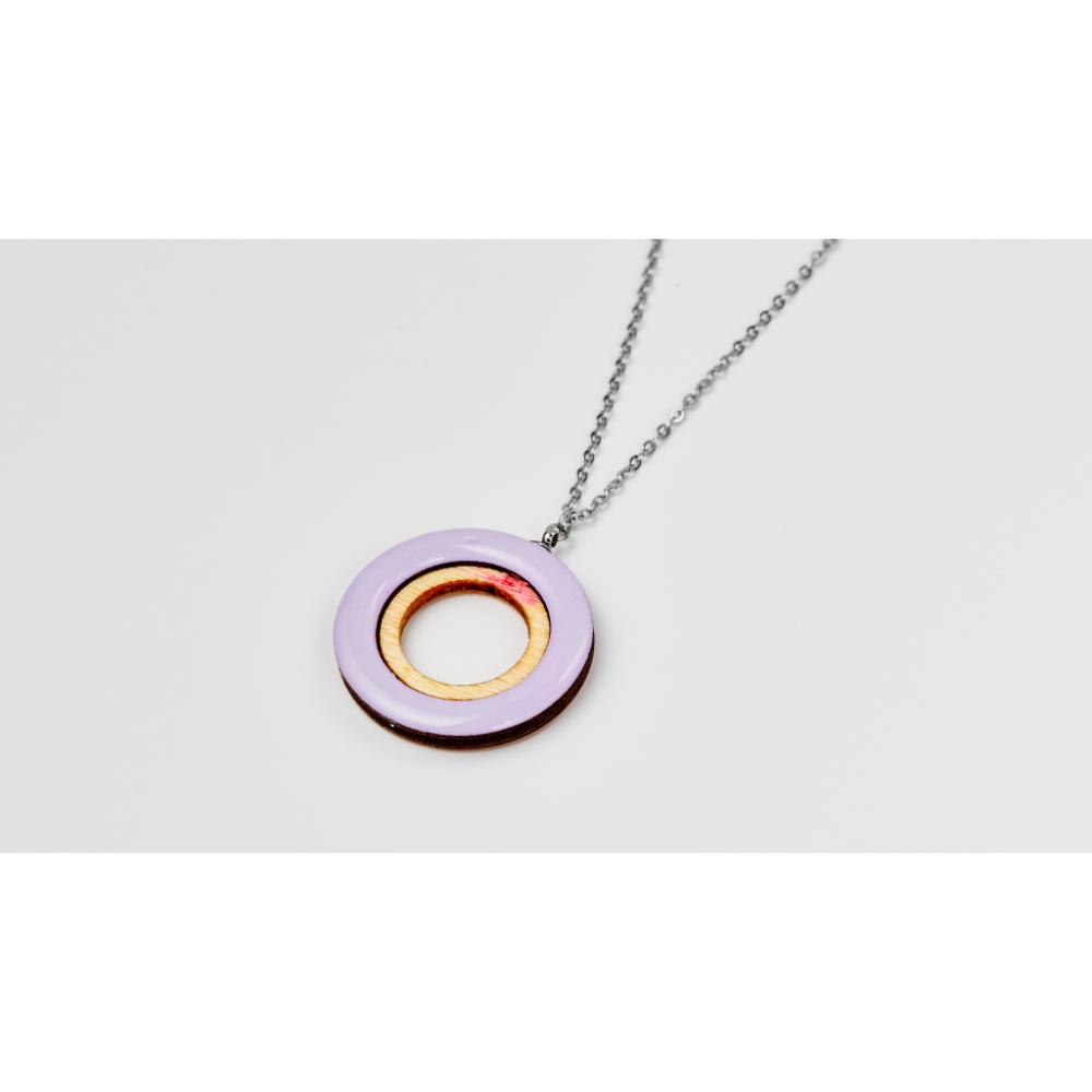Ανακαλύψτε το μοναδικό ελληνικό χειροποίητο κολιέ σε λιλά χρώμα, κατασκευασμένο από φυσικό ξύλο, υγρό γυαλί και ατσάλι σε διπλό σχήμα κύκλου. Η απαλή απόχρωση του λιλά δημιουργεί μια ρομαντική και μοναδική αίσθηση, ενώ η χειροποίητη κατασκευή του ενισχύει τη φυσική ομορφιά και την αυθεντικότητα του κολιέ.Χαρακτηριστικά: