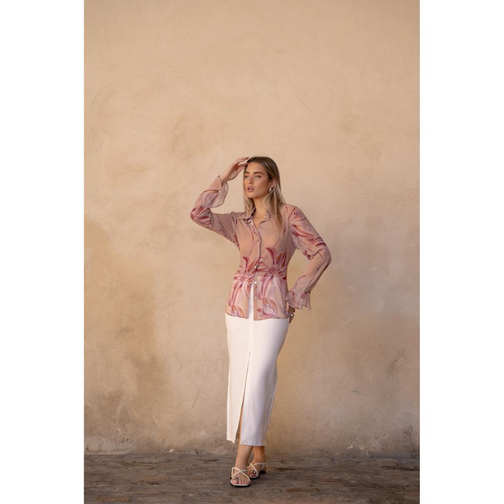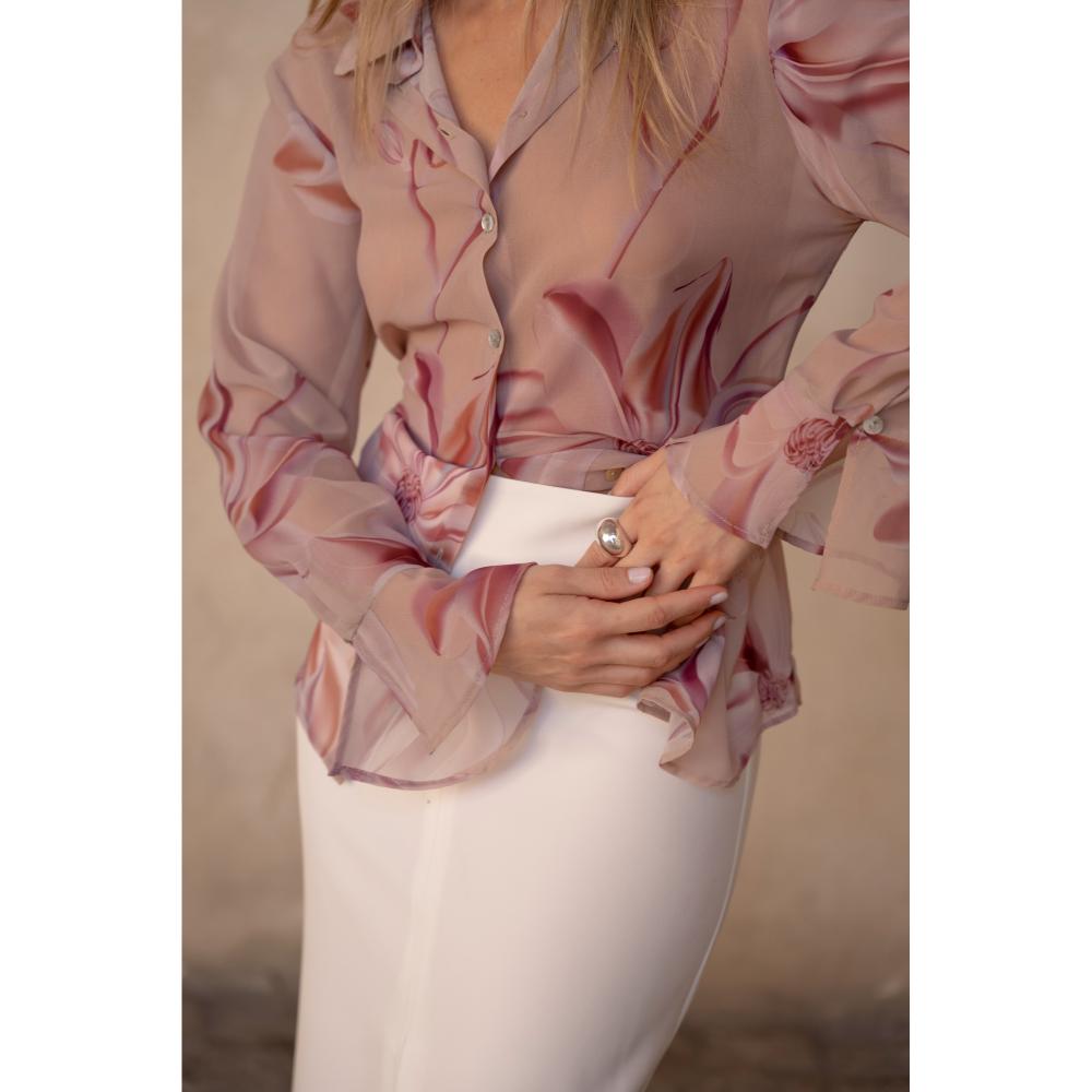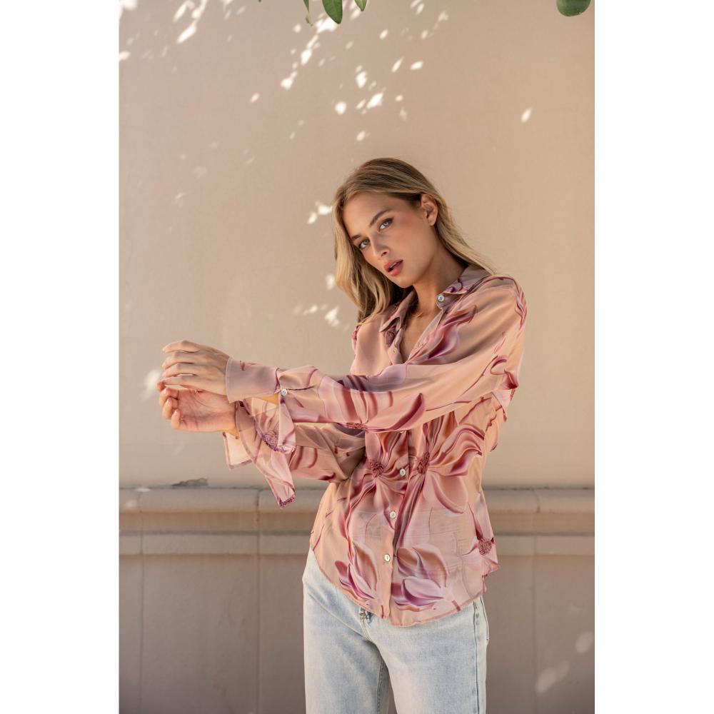 Αναδείξτε την ρομαντική σας πλευρά με αυτό το κομψό πουκάμισο από διάφανη μουσελίνα. Διακοσμημένο με εντυπωσιακά λουλούδια και μανίκια με βολάν, προσδίδει κίνηση και φινέτσα σε κάθε σας εμφάνιση. Η ελαφριά και αέρινη υφή της μουσελίνας κάνει το πουκάμισο ιδανικό για casual αλλά και πιο formal σύνολα, χαρίζοντάς σας κομψότητα με μοναδικό στυλ.Υλικό: 54% Polyester, 46% recycled polyester