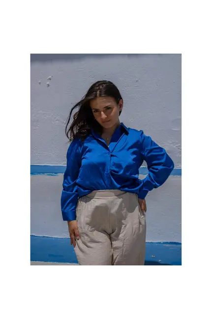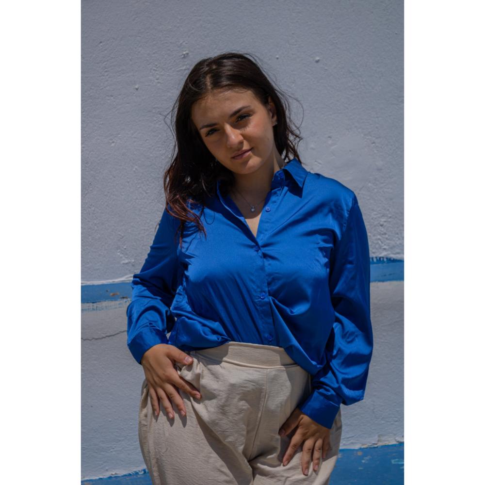 Αναβαθμίστε το στιλ σας με αυτό το πουκάμισο σατέν σε μπλε χρώμα. Κατασκευασμένο από υψηλής ποιότητας υλικά, αυτό το πουκάμισο συνδυάζει άνεση και κομψότητα.