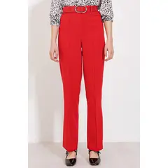 Έντονο Κόκκινο Κρεπ Παντελόνι Ψηλόμεσο με Ίσια Γραμμή