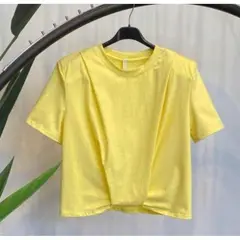 Κοντομάνικη μπλούζα σε έντονο κίτρινο χρώμα, με ενσωματωμένες βάτες στους ώμους που τονίζουν τη σιλουέτα και δημιουργούν κομψή, ανάποδη τριγωνική γραμμή στο σώμα. Το ελαφρώς ελαστικό ύφασμα με βαμβάκι και ελαστάνη προσφέρει άνεση και σταθερή εφαρμογή. Ένα statement basic που απογειώνει κάθε απλό...