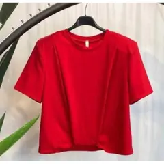 Κοντομάνικη μπλούζα σε έντονο κόκκινο χρώμα, με ενσωματωμένες βάτες στους ώμους για δυναμική σιλουέτα και κομψή, ανάποδη τριγωνική γραμμή. Το ελαστικό ύφασμα από βαμβάκι και ελαστάνη αγκαλιάζει το σώμα χωρίς να περιορίζει. Ένα basic κομμάτι με δυναμικό χαρακτήρα.Καλύπτει τα μεγέθη S έως XL....