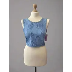 Ανανεώστε τη συλλογή σας με αυτό το κομψό τοπ σε σιέλ απόχρωση, διακοσμημένο με περίτεχνα μπροντερί μοτίβα. Ιδανικό για καλοκαιρινές εμφανίσεις, διαθέτει ελαστική πλάτη για άνεση και σταθερή εφαρμογή.Καλύπτει XS-M Σύνθεση: 97% cotton, 3% elastane