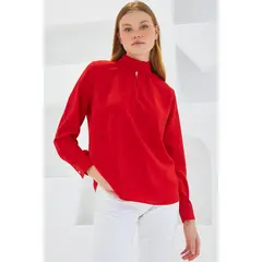 Ζωντανό Κόκκινο Μακρυμάνικο Top με Υψηλή Λαιμόκοψη και Διακριτικό Άνοιγμα | BIG11289