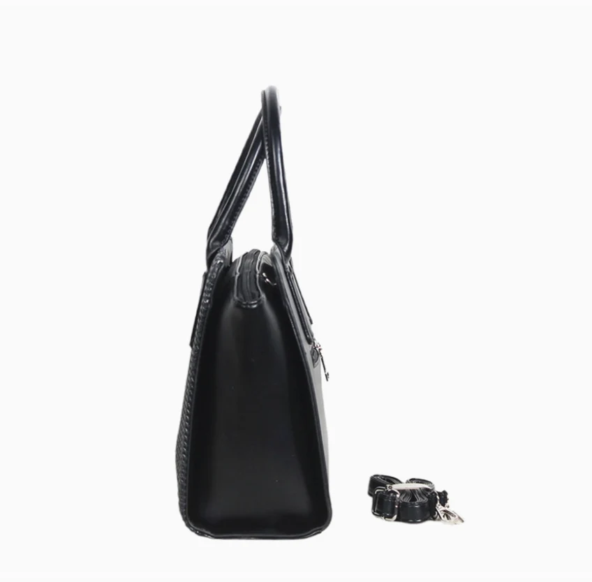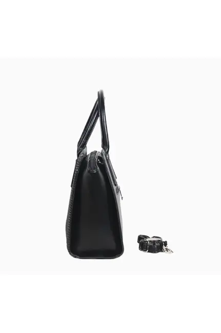 Γυναικεία τσάντα χειρός με λουράκι ώμου σε μαύρο χρώμα. Ο σχεδιασμός τύπου openwork με κοπτό μοτίβο προσθέτει ιδιαίτερο χαρακτήρα, ενώ το λουράκι ώμου προσφέρει άνεση στη χρήση. Κατασκευασμένη από δερματίνη, αυτή η handbag συνδυάζει πρακτικότητα και κομψότητα, αποτελώντας ιδανική επιλογή για καθημερινές αλλά και πιο επίσημες εμφανίσεις.