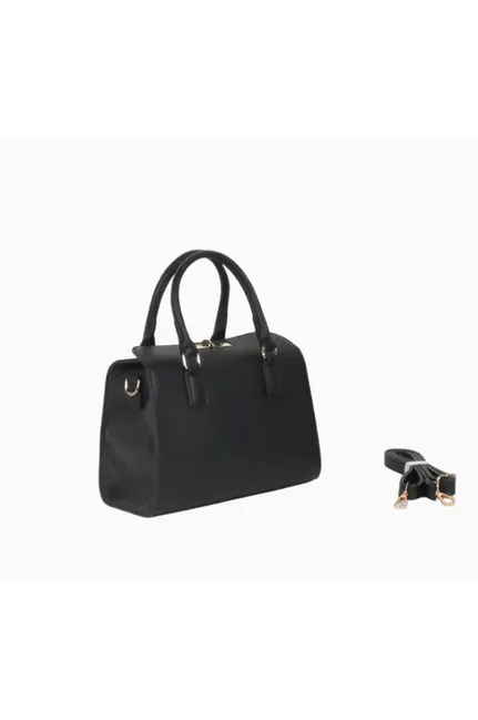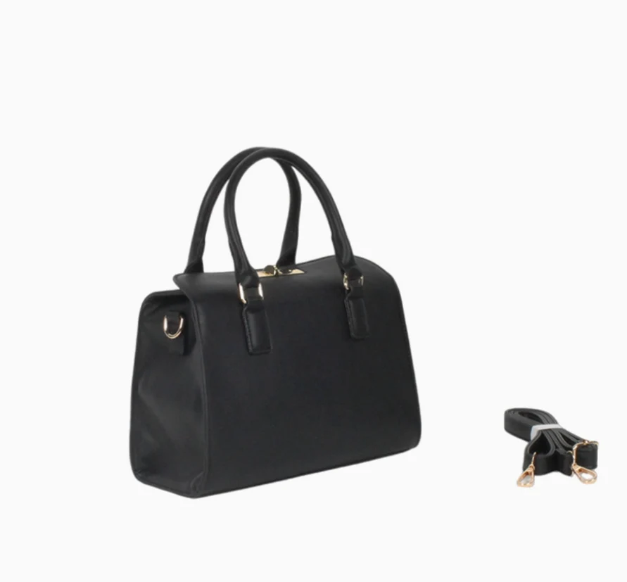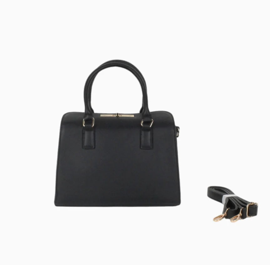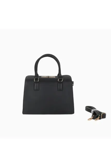 Γυναικεία τσάντα χειρός από δερματίνη, σε κομψή και στητή γραμμή. Διαθέτει αποσπώμενο λουράκι για να φοριέται και στον ώμο, ενώ το χρυσό κούμπωμα προσθέτει διακριτική πολυτέλεια στο σχέδιο. Με διαστάσεις 10.5 x 26 x 20 εκ., προσφέρει πρακτικότητα και στυλ, αποτελώντας ιδανική επιλογή για καθημερινές και πιο επίσημες εμφανίσεις.