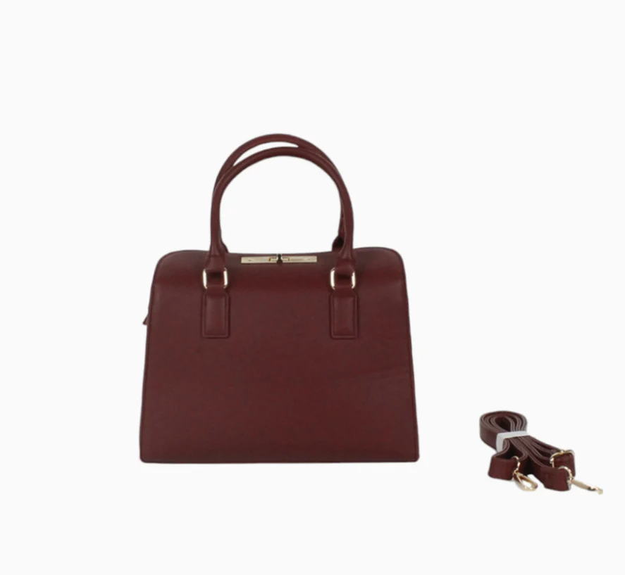 Γυναικεία τσάντα χειρός από δερματίνη, σε κομψή και στητή γραμμή. Διαθέτει αποσπώμενο λουράκι για να φοριέται και στον ώμο, ενώ το χρυσό κούμπωμα προσθέτει διακριτική πολυτέλεια στο σχέδιο. Με διαστάσεις 10.5 x 26 x 20 εκ., προσφέρει πρακτικότητα και στυλ, αποτελώντας ιδανική επιλογή για καθημερινές και πιο επίσημες εμφανίσεις.