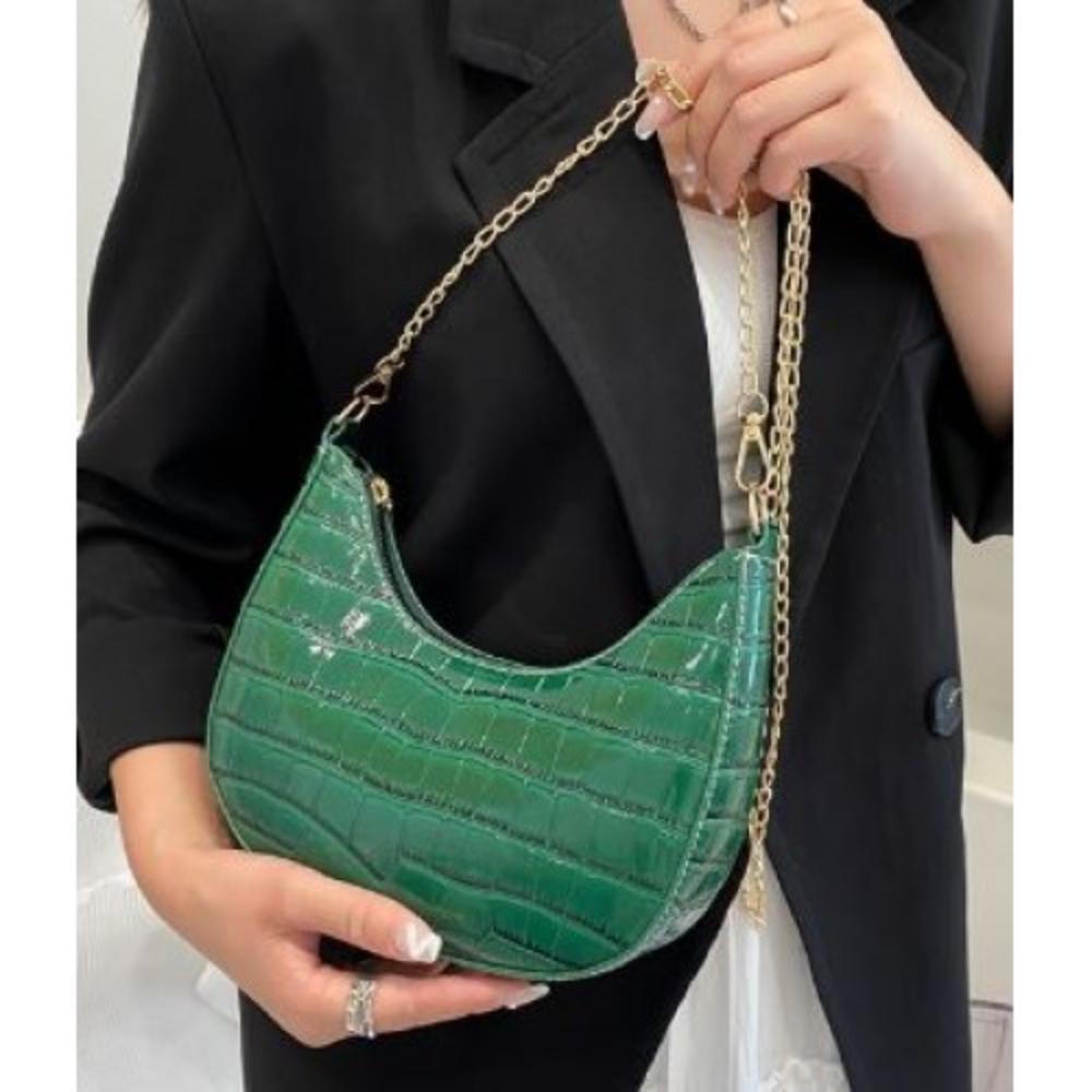 Μοντέρνα τσάντα ώμου σε πράσινο χρώμα με κροκό λεπτομέρειες. Ιδανική επιλογή για fashionistas που αναζητούν ένα statement κομμάτι. Αναβάθμισε το στυλ σου με αυτό το εντυπωσιακό αξεσουάρ.Διαστάσεις: 23x18x5