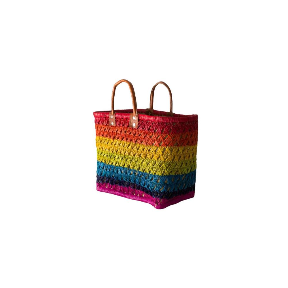 Μια εντυπωσιακή πολύχρωμη τσάντα από τη Μαδαγασκάρη με μοτίβο ουράνιου τόξου, χειροποίητη από γυναίκες τεχνίτριες σε πρόγραμμα fair trade. Ιδανική για όσες αγαπούν το χρώμα και υποστηρίζουν τη βιώσιμη μόδα.