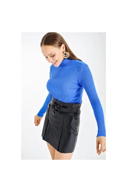 Αυτό το κομψό ζιβάγκο είναι κατασκευασμένο από 100% ακρυλικό ύφασμα, που το καθιστά εξαιρετικά μαλακό, ζεστό και άνετο για τις κρύες μέρες του χειμώνα. Το έντονο μπλε χρώμα του προσθέτει μια ζωντανή πινελιά στην γκαρνταρόμπα σας, καθιστώντας το ιδανικό για να το φορέσετε τόσο μόνο του όσο και κάτω από ένα σακάκι ή παλτό.Η πλεκτή, ριγέ υφή του προσδίδει επιπλέον διάσταση και στυλ, ενώ η στενή του εφαρμογή αγκαλιάζει το σώμα και αναδεικνύει τη σιλουέτα σας. Ο ψηλός λαιμός (ζιβάγκο) προσφέρει επιπλέον ζεστασιά και κομψότητα, ιδανική για καθημερινές και επαγγελματικές εμφανίσεις.